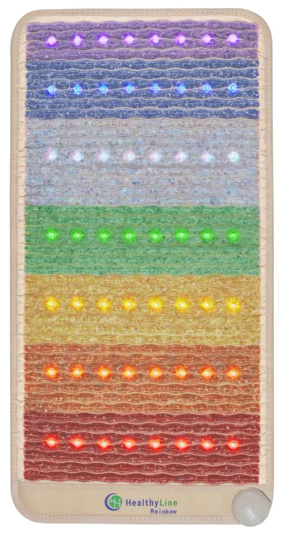 Multicolor Photon Light Therapy (56 LEDs). Rather than standard Red-Light therapy, the Rainbow Chakra MiniMat features 7 LED colors, each aligned with a specific Chakra. This creates a multicolor photon light therapy that spans the entire color spectrum, offering a broader range of therapeutic light wavelengths.
